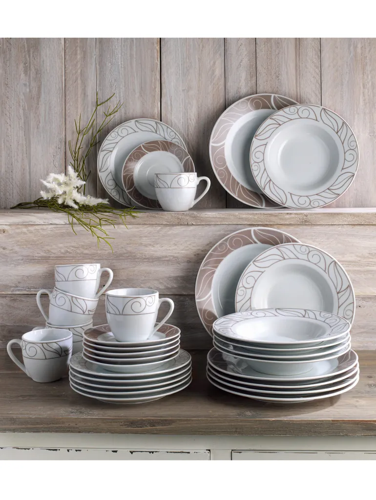 Hayat Tafelservice 24 Tlg Blumenmuster Ess-Service Tafelservice Dinner Tellerset „Rosarium“